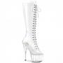 Unleash your inner fashionista with the Adore-2021C Knee Boot. Featuring a dramatic 7-inch heel and a 2 3/4-inch platform, these clear peep-toe boots are both daring and chic. The lace-up front adds a unique flair, creating an eye-catching design that complements any outfit. Ideal for parties, performances, or a night out, the knee-high silhouette elevates your style to new heights. Make an unforgettable impression with the Adore-2021C and let your shoes do the talking.